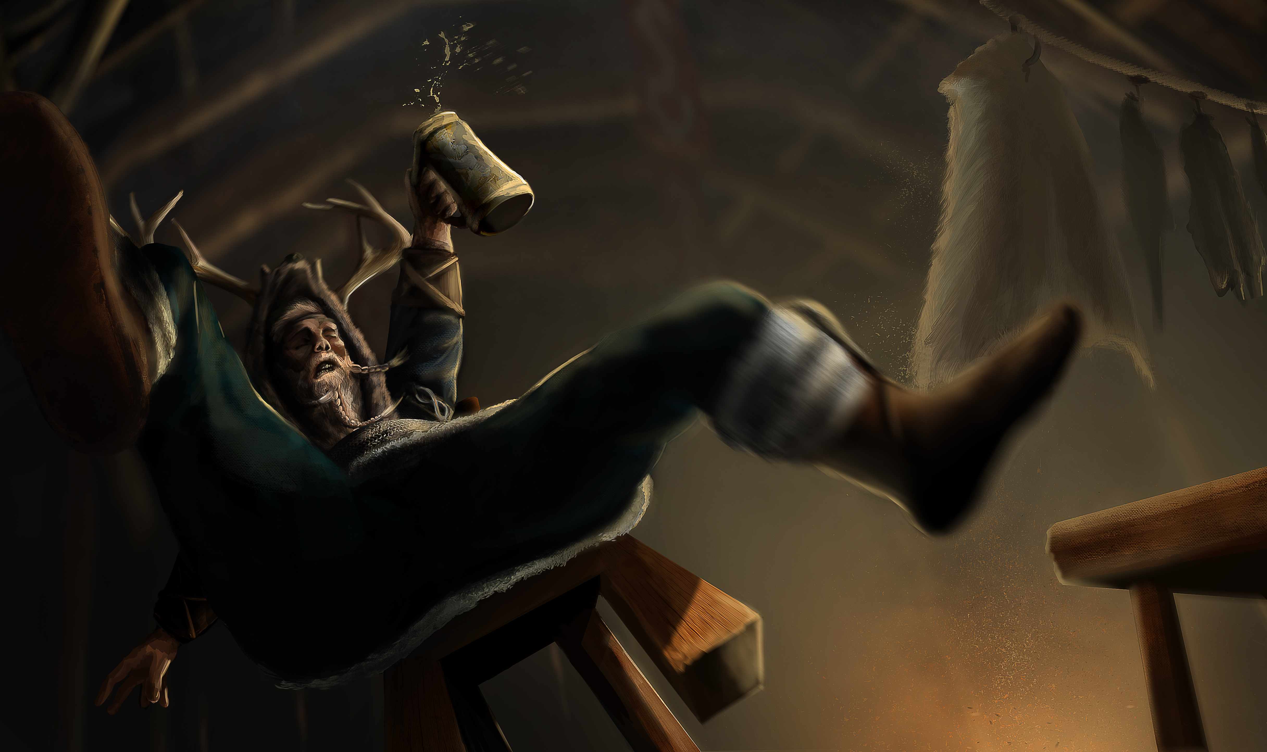 The air was thick with ash, and what light there was was a blazing inferno, a bonfire of my home. To be honest, I was plastered. I had been in surgery and found a little rye a little anesthetic, and deduced that much more would work toward a far greater effect. So much was true, but besides finding myself slobbering drunk, and that the room had taken after me, swaying as if it would fall over, I awoke to the sounds of a raid.