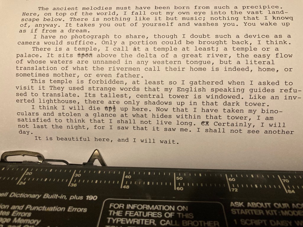 There is a temple, I call it a temple at least; a temple or a palace or a prison. It’s all one. It sits above the delta of a great river, the easy flow of whose waters are unnamed in any western tongue, but a literal translation of what the rivermen call their home is indeed, home, sometimes mother, and even father.
