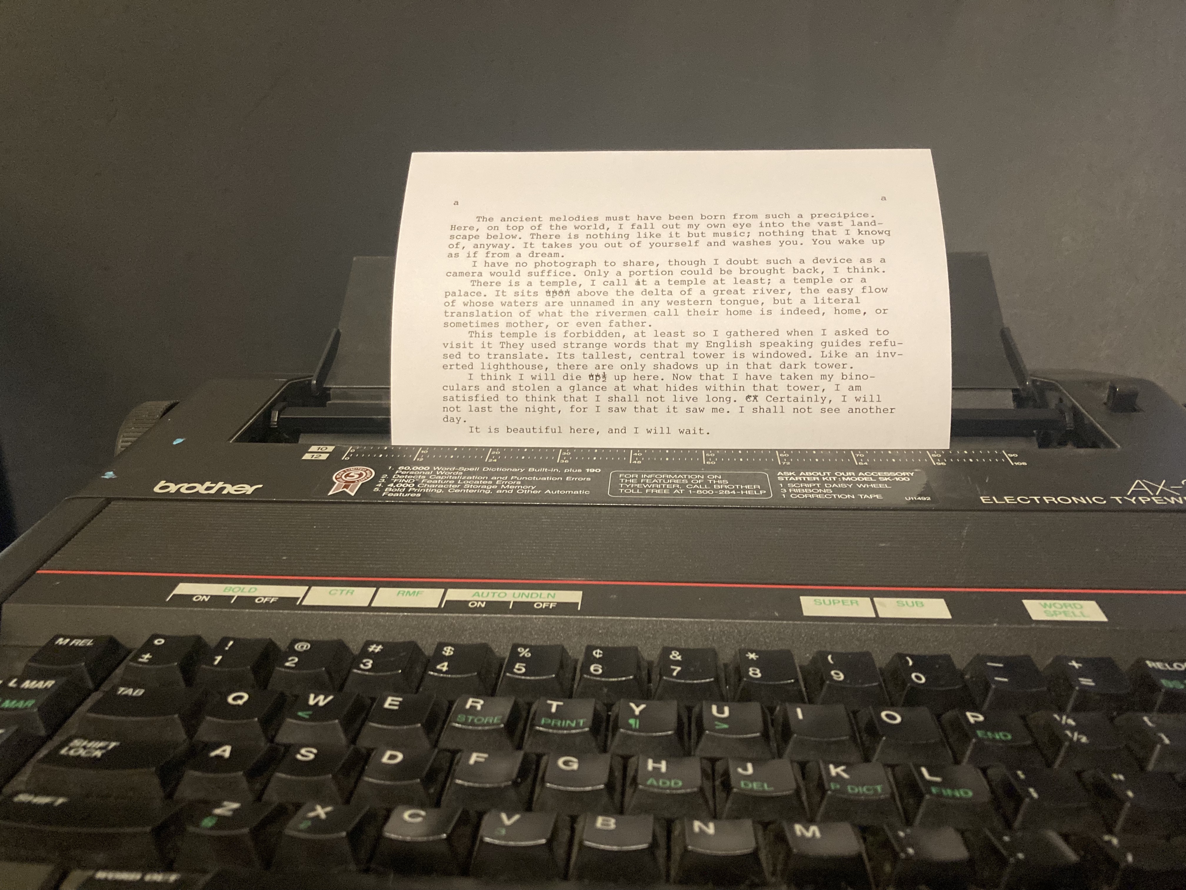 I think I will die up here. You see, I had my binoculars. I stole a glance up into that tower. I saw what dark thing was hidden there, a dreadful, living idol, formless like a slithering bunch of maggots. I am glad that I will not live long. I will not last the night, certainly. I saw it, and saw that it saw me. I shall not see another day.