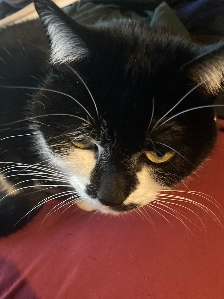The minute hand is on the six, there’s another half hour to the hour, and the cat is on my lap, and the document is blank, and the sun is shining through the window.