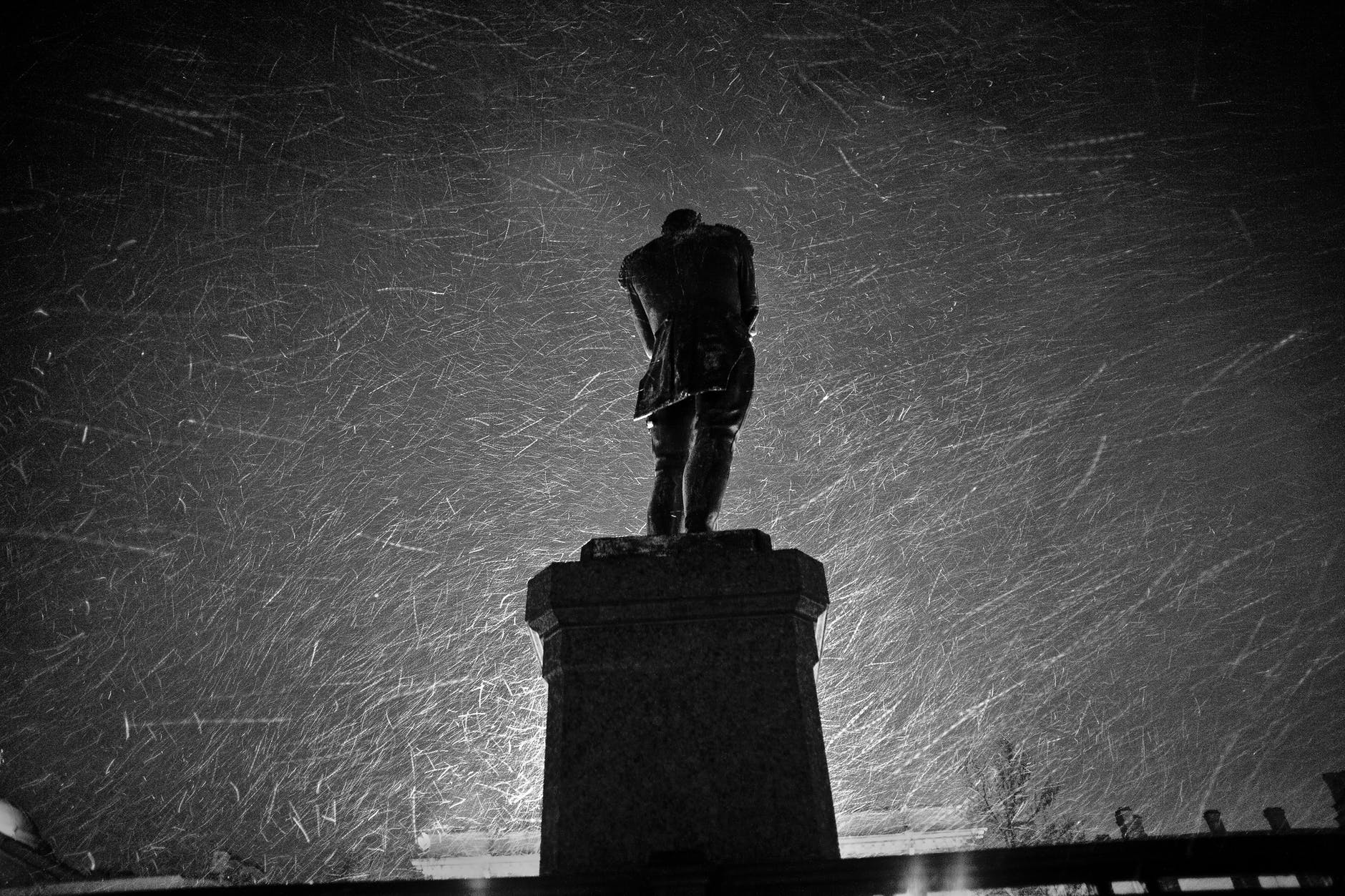 He stood there silently rubbing his chin, his unblinking gaze boring into the chiseled stone while I paced before the statue watching its eyes follow me back and forth.